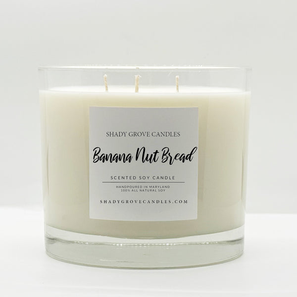 Capture the aroma of freshly baked banana nut bread still warm from the oven. Top notes of toasted walnut and ripe banana combine with nutmeg and sugar for a blend that’s perfectly nutty and sweet. Vanilla and cake base notes enrich the sweetness in this toasty scent. Hand poured, 100% soy wax, Cotton Wick, Dye free, phthalate free and does not contain chemicals from California’s Prop 65 list.